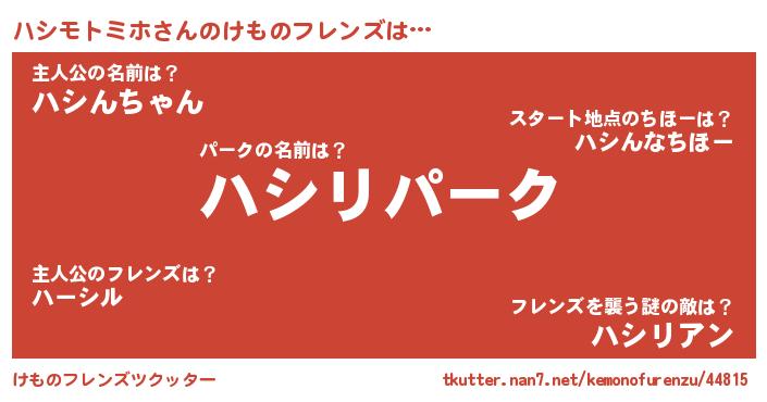 | ポケモン風あだ名 | 『ハシセウス』『ハシチュウ』 |