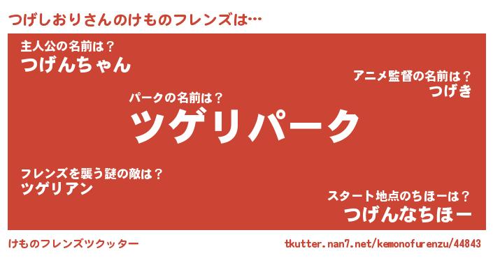 | ヒーロー風カッコイイあだ名 | 『最強戦士ツゲシオリ』『仮面ツゲダー』 |