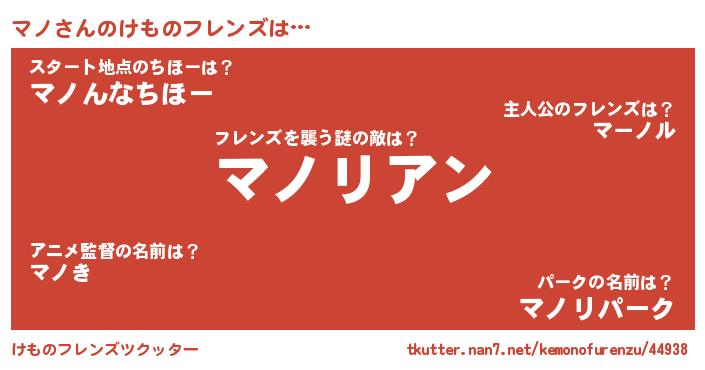 | 男性向けラノベタイトル風あだ名 | 『おまえをオタクにしてやるから、俺をマノにしてくれ! 』 |
