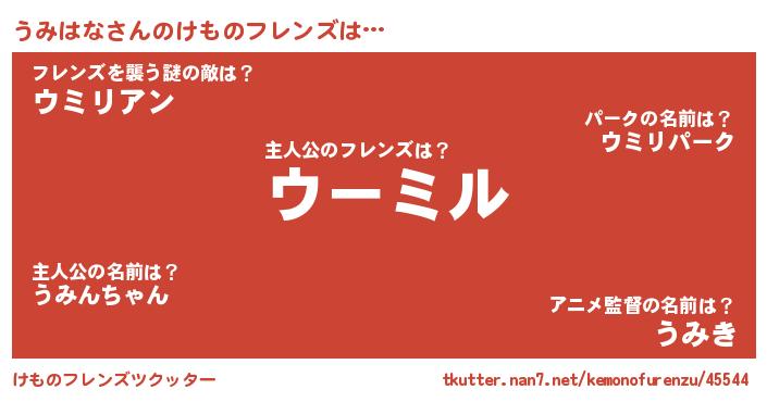 | 意味不明あだ名 | 『住所不定無職うみはな(4歳)』 |