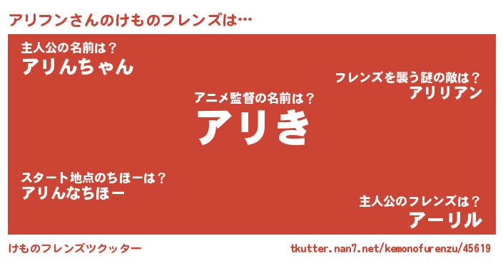 | ヒーロー風カッコイイあだ名 | 『天弓騎士アリ』『スーパーアリフン』 |