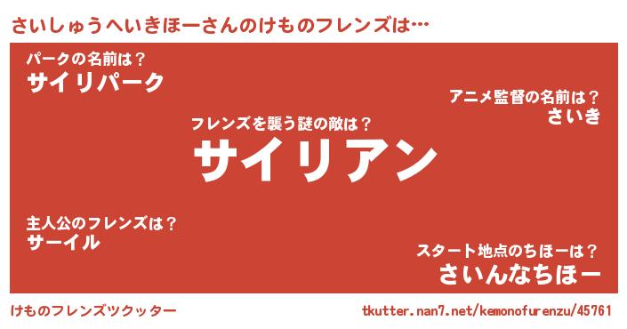 | ヒーロー風カッコイイあだ名 | 『友情の使者さいしゅうへいきほー』 |