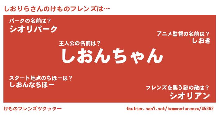 | 意味不明あだ名 | 『住所不定無職しおりら(43歳)』 |