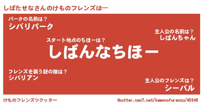 | 男性向けラノベタイトル風あだ名 | 『この素晴らしい世界にしばたせなを!』 |