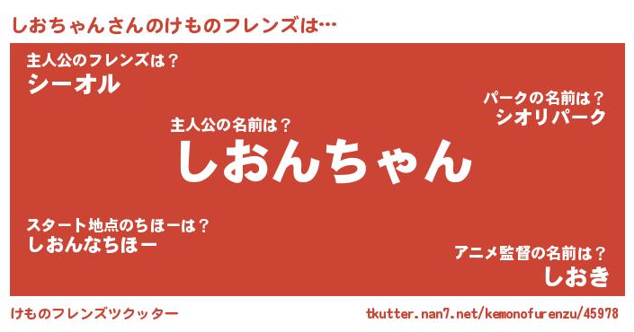 | 男性向けラノベタイトル風あだ名 | 『しおちゃんの憂鬱』 |