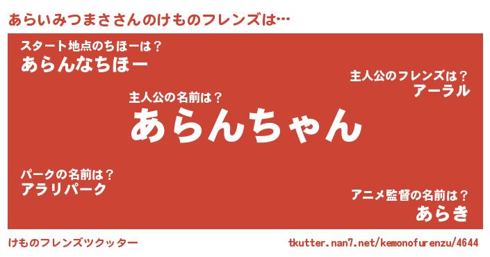 | ヒーロー風カッコイイあだ名 | 『スーパーアライミツマサ』 |