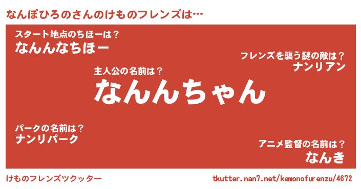 | ヒーロー風カッコイイあだ名 | 『スーパーナンポヒロノ』『炎刃騎士ナン』 |