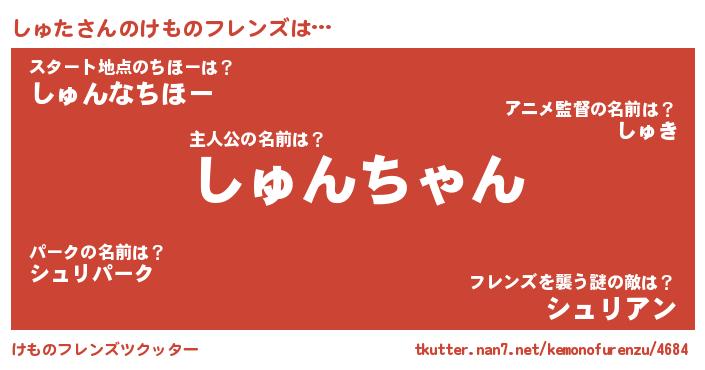| 2回繰り返すあだ名 | 『しゅしゅ』『じょぼじょぼ』 |