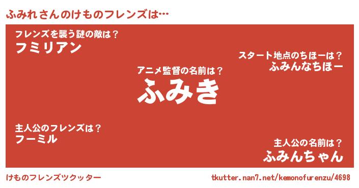| 料理風あだ名 | 『ふみれの豆乳スープ』『ふみれごはん』 |