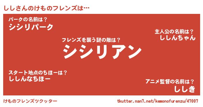 | ヒーロー風カッコイイあだ名 | 『仮面シシダー』『愛の使者しし』 |