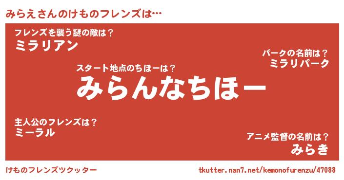 | 意味不明あだ名 | 『みらえフォーエバー』『ニラ科みらえ属』 |
