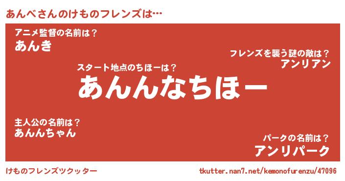 | 意味不明あだ名 | 『住所不定無職あんべ(8歳)』『自称あんべ』 |
