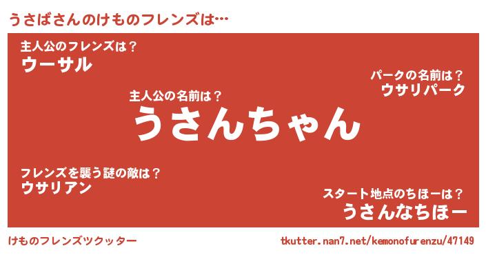 | ポケモン風あだ名 | 『ウサチュウ』『ゼニウサ』 |