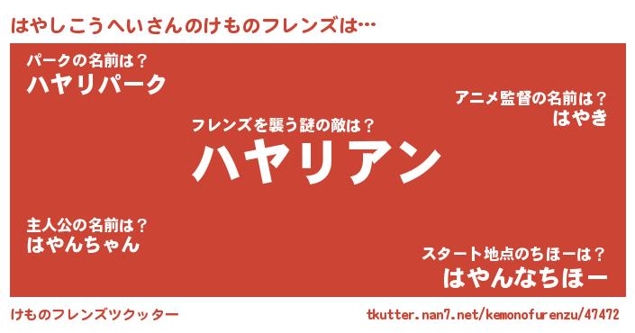 | 男性向けラノベタイトル風あだ名 | 『転生したらはやしこうへいだった件』 |