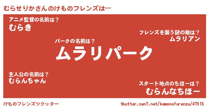 | 肩書あだ名 | 『むらせりか閣下』『むらせりかリーダー』 |