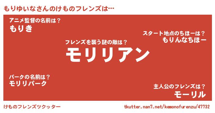 | ヒーロー風カッコイイあだ名 | 『慈愛の使者もりゆいな』『天弓騎士モリ』 |
