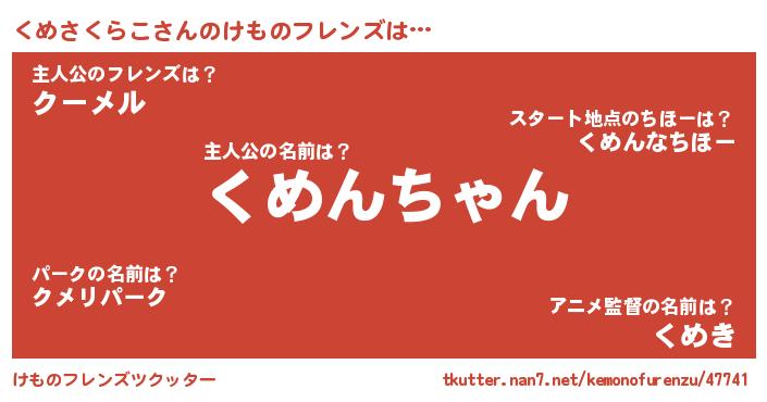| ファンタジー風あだ名 | 『クメフェル』『クメディッシュ』 |