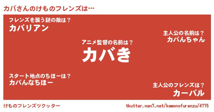 | 萌えアニメ | 主人公(カバ)のあだ名『 カバてゅん』 |