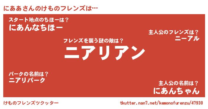 | 女子向けラノベタイトル風あだ名 | 『にああ恋絵巻』『にああの雑貨屋さん』 |