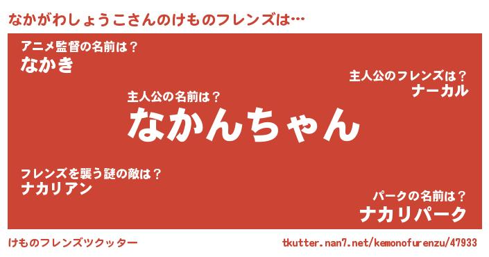 | 意味不明あだ名 | 『住所不定無職なかがわしょうこ(93歳)』 |