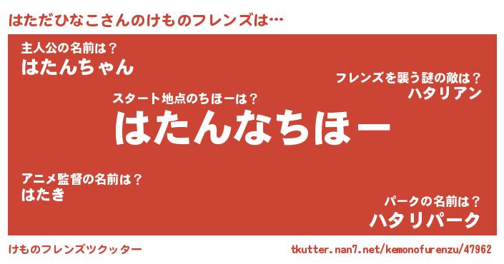 | 2回繰り返すあだ名 | 『ははたた』『ざーざー』『はたはた』 |