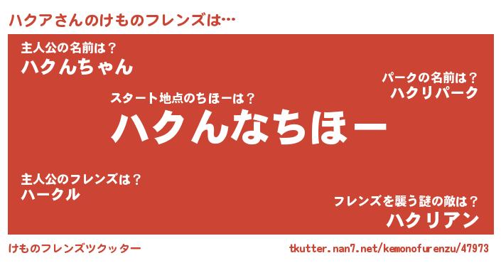 | ヘコむあだ名 | 『つくし』『ハクにー』『ハクア(爆)』 |