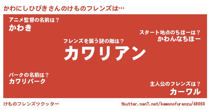 | 男性向けラノベタイトル風あだ名 | 『カワニシヒビキスレイヤー』 |