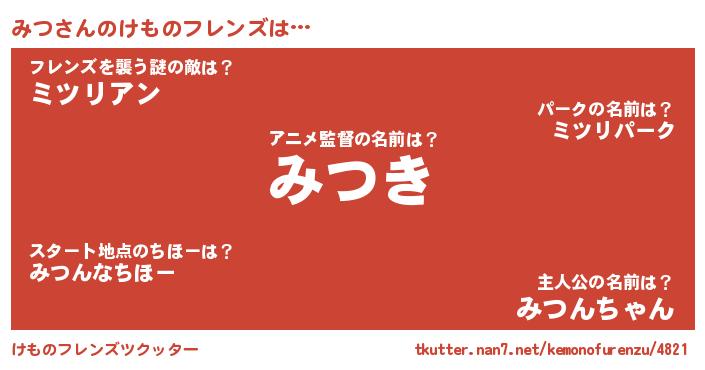 | 意味不明あだ名 | 『住所不定無職みつ(41歳)』『ペロリンみつ』 |