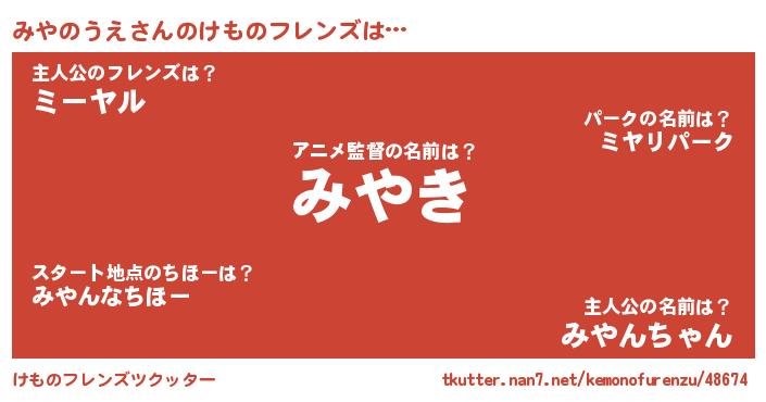 | 男性向けラノベタイトル風あだ名 | 『この素晴らしい世界にみやのうえを!』 |