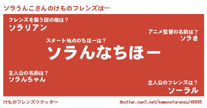 | 男性向けラノベタイトル風あだ名 | 『ソラウンコスレイヤー』 |