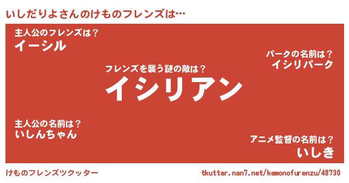 | ヘコむあだ名 | 『いしだりよ(苦笑)』『いしを』 |