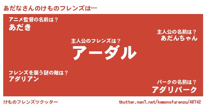 | 可愛いあだ名 | 『あだぷりん』『あだなママ』 |