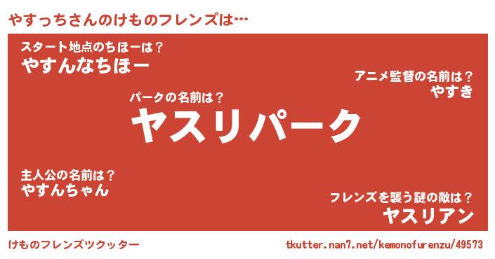 | ヒーロー風カッコイイあだ名 | 『サイバー戦士ヤスッチ』『天弓騎士ヤス』 |