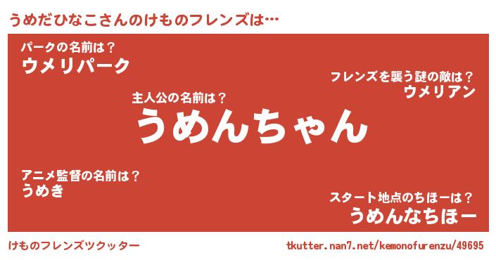 | ポケモン風あだ名 | 『ウメチュウ』『ウーメイ』 |