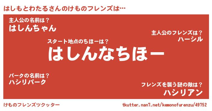 | 2回繰り返すあだ名 | 『つんつん』『ははしし』『ずけずけ』 |