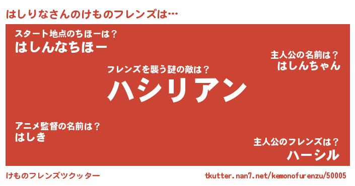 | ヒーロー風カッコイイあだ名 | 『友情の使者はしりな』『ネオハシリナ』 |