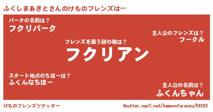 | ヒーロー風カッコイイあだ名 | 『仮面フクダー』『ネオフクシマアキト』 |