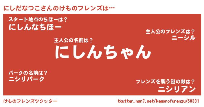 | 胡散臭い通販商品みたいなあだ名 | 『必ず成功する水晶球…その名も「にしだなつこ」』 |