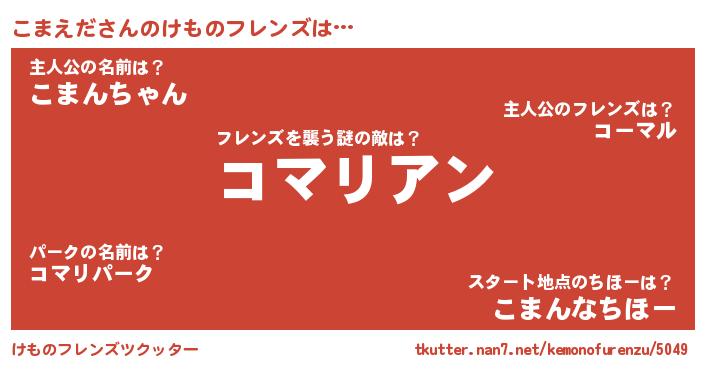 | 市区町村名 | 『こま田谷区』『こま島市』 |
