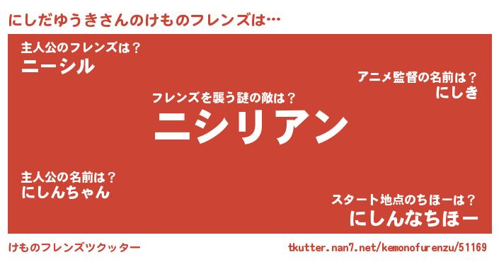 | 肩書あだ名 | 『にしだゆうき教授』『にしだゆうき班長』 |