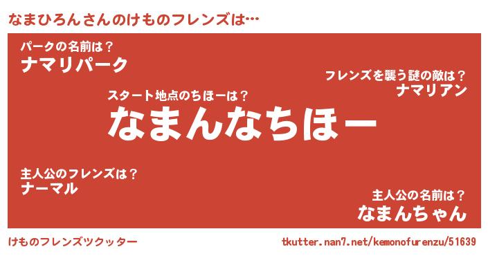 | 可愛いあだ名 | 『なまちー』『なまうちぇる』 |