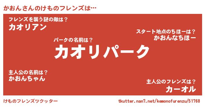 | ヒーロー風カッコイイあだ名 | 『超時空戦士カオン』『天空の使者かおん』 |