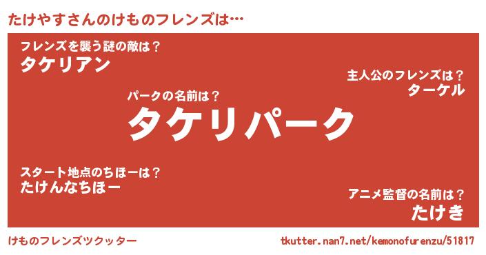 | 男性向けラノベタイトル風あだ名 | 『転生したらたけやすだった件』 |