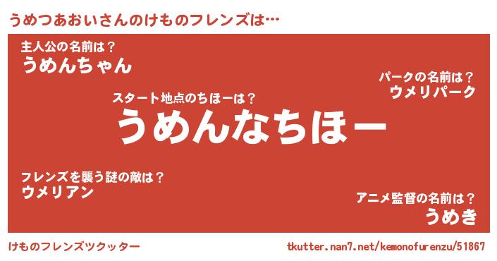 | ポケモン風あだ名 | 『ウーメイ』『ウメツダネ』 |