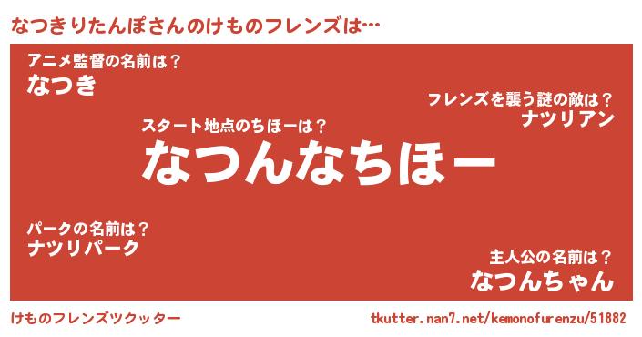 | 男性向けラノベタイトル風あだ名 | 『転生したらなつきりたんぽだった件』 |