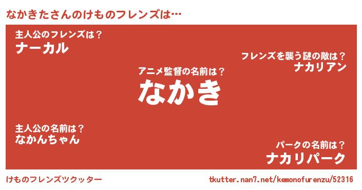 | 意味不明あだ名 | 『ヨモギ科なかきた属』『自称なかきた』 |