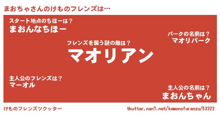 | 料理風あだ名 | 『まおちゃのトマト煮』『まおちゃごはん』 |