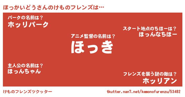 | 萌えアニメ | 主人公(ほっかいどう)のあだ名『 ほっほっきゅん』 |