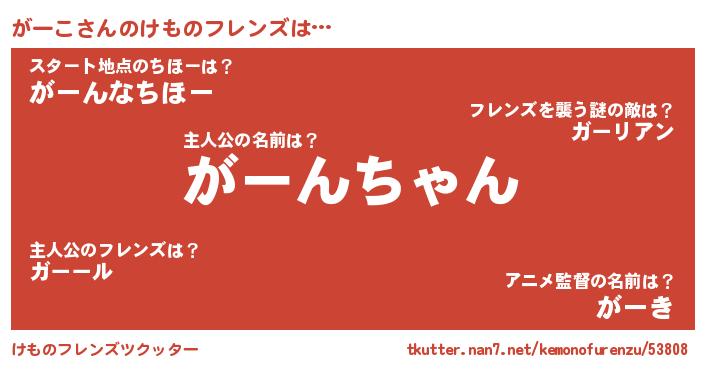 | 2回繰り返すあだ名 | 『がーがー』『ががーー』『どくどく』 |