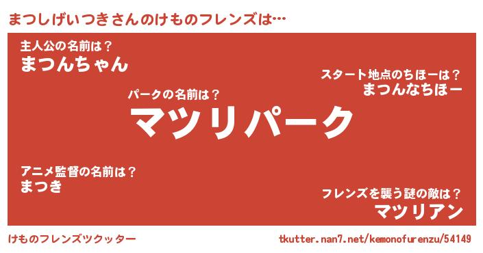 | 男性向けラノベタイトル風あだ名 | 『Re:まつしげいつきから始める異世界生活』 |